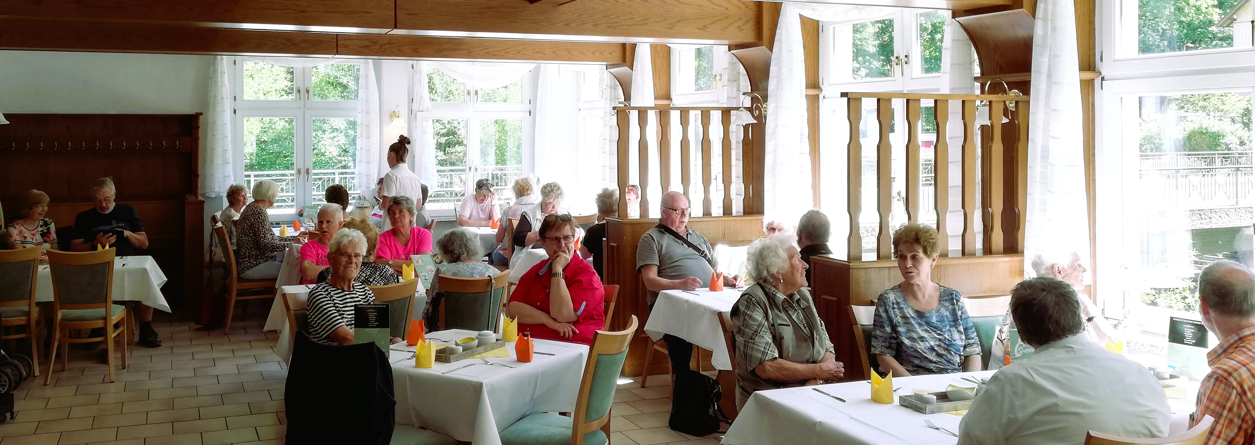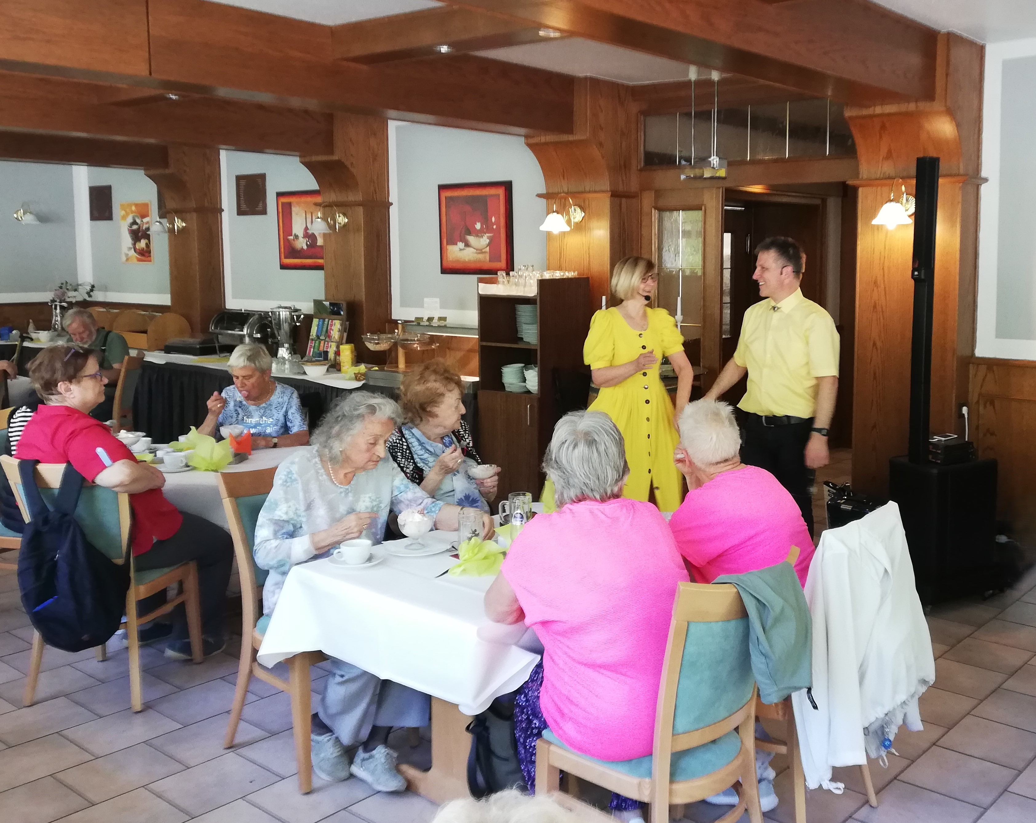 Nach ausreichend frischer Luft am Vormittag kehrten wir in das Hotel zur Forelle ein. In der hauseigenen Gaststätte begrüßte uns bereits der Harzer Jodlermeister mit seiner Frau. Mit Ihrem Singen, Jodeln und Tanzen animierten sie uns zum Mit-Schunkeln, fast wie auf unserer Weihnachtsfeier.