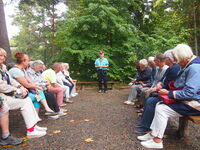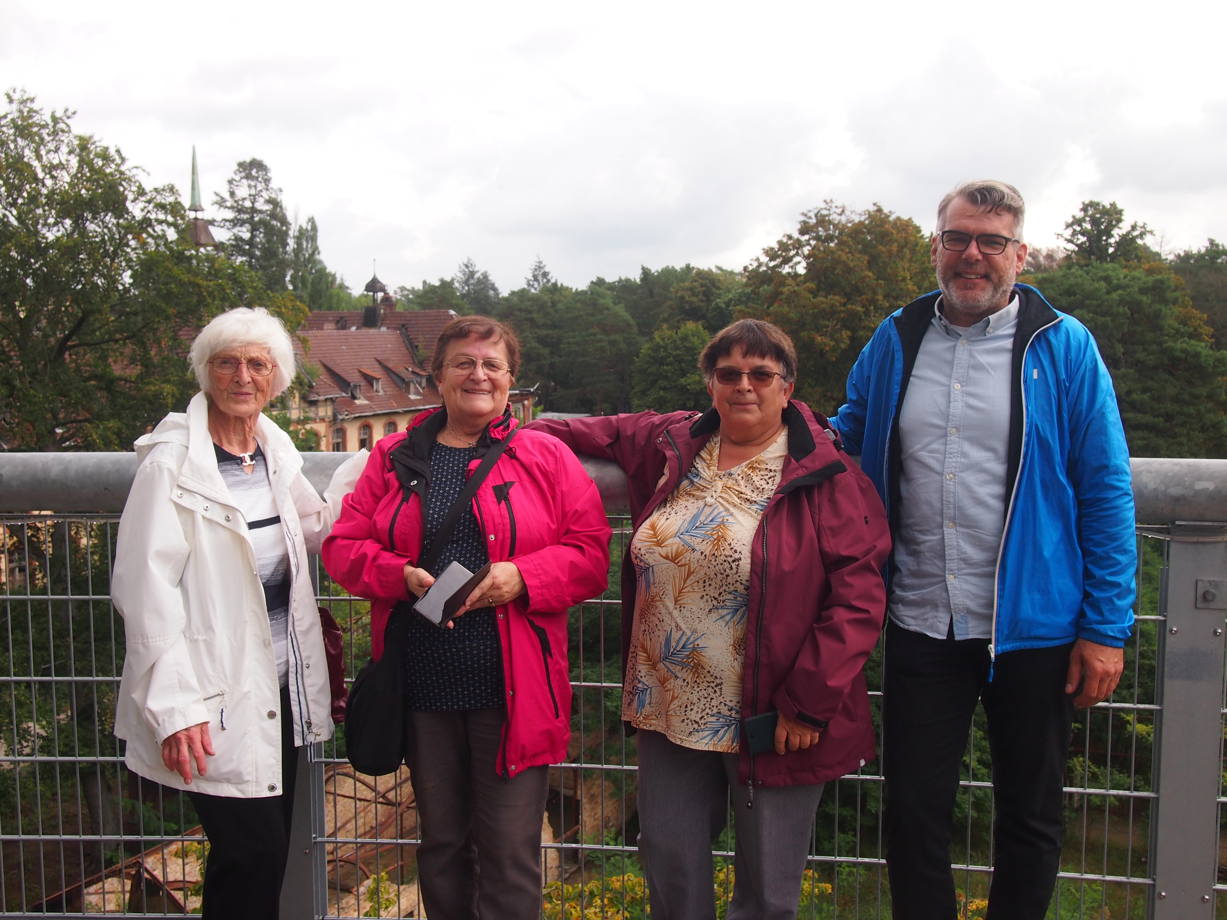 27 Mieterinnen und Mieter sind am 11. September mit ihrer 1893 nach Beelitz zum Besuch der sagenumwobenen Heilstäten gefahren um in die Geschichte dieses Riesenareals einzutauchen. Pünktlich zu unserer Führung verzog sich auch der Regen. Ein freundlicher Schweizer Historiker nahm uns mit auf eine Reise zum Ende des 19. Jahrhunderts, wo die ersten Gebäude der Beelitzer Heilstätten mit einem unglaublichen Sachverstand der Ingenieure erbaut worden um die nicht nur im nahen Berlin grassierende Tuberkulose in den Griff zu bekommen. Das Areal ist wunderbar verwildert, die einzelnen Gebäude zum Teil immer noch begehbar. Inmitten der Gebäude gibt es immer wieder Gelegenheiten zur Rast, Spielplätze, Sandkästen und Imbissmöglichkeiten. Auch wir genießen ein Mittagessen inmitten des Waldes. Der Baumwipfelpfad lädt zusätzlich ein, die verfallen Gebäude auch von oben zu betrachten und sich einen Überblick über das weiträumige Waldstück zu verschaffen.