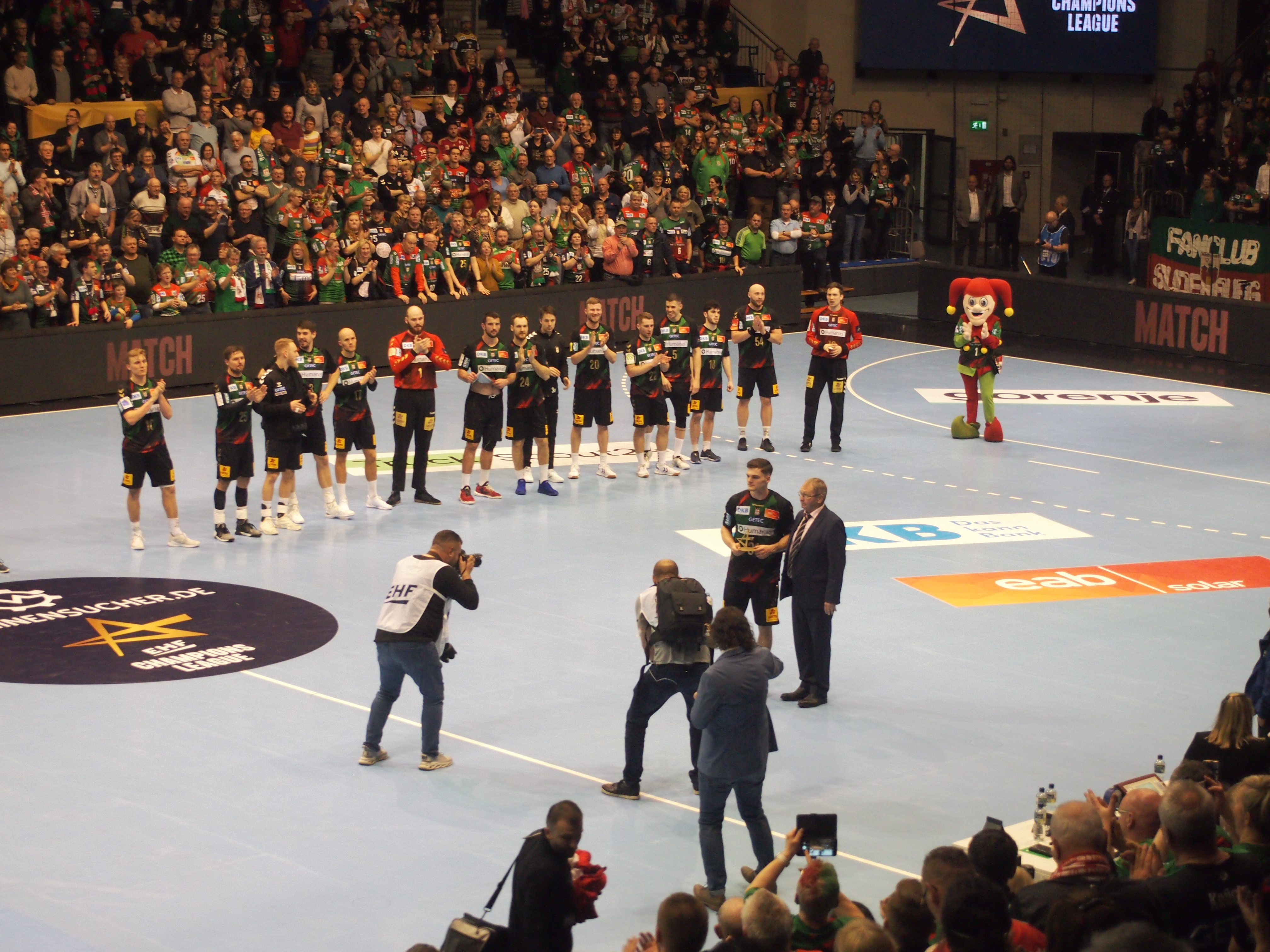 Und genauso beeindruckend gestaltete sich der Spielverlauf. War das Spiel in der ersten Halbzeit noch ausgeglichen (Halbzeitstand 16:15), konnte sich der SC Magdeburg in der zweiten Halbzeit immer weiter absetzen. Über eine grandiose Abwehr, Portner-Paraden und sehenswerte Konter führte der Deutsche Meister zehn Minuten vor dem Ende mit 27:21. Schlussendlich stand dann ein ungefährdeter Sieg mit sieben Toren Vorsprung (32:25) zu buche. Die Halle bebte in den letzten Spielminuten und die hinter unseren Sitzplätzen platzierten ungarischen Fans kamen nicht mehr gegen die Fan-Gesänge an.