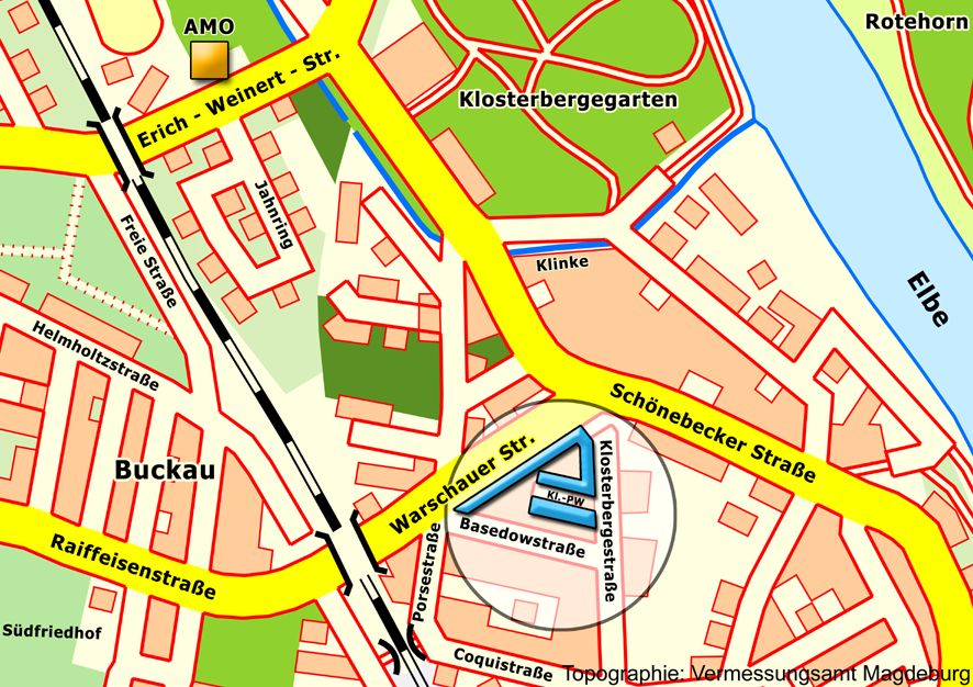 Vis-à-vis mit Puppentheater, der Elbe und dem Klosterbergegarten bietet der Wohnungsbestand der 1893 in Buckau alles was das Herz begehrt. Zentrumsnah und dennoch im Grünen gelegen gibt es hier viel Kultur von Kleinkünstlern aber auch das Gesellschaftshaus und die Gruson-Gewächshäusern zu entdecken.