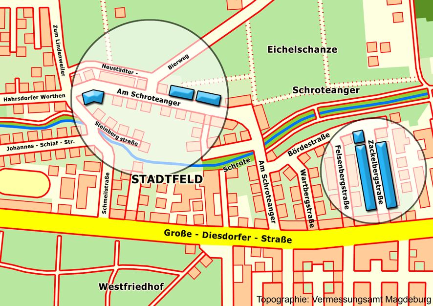 Stadtfeld gehört zu den attraktivsten Wohngebieten der Landeshauptstadt Magdeburg und ist am dichtesten besiedelt.