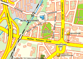 Sehr gute Einkaufsmöglichkeiten, Schulen und Kindergärten sowie die unmittelbare Nähe zum Stadtzentrum, zur Universität und zur Fachhochschule tragen in erheblichem Maße zur Attraktivität dieses Wohngebietes bei.