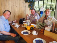 Auf dem Rückweg kehren wir noch im Kürbishof Klaistow ein, bewundern die Kürbisausstellung und lassen uns leckere Blechkuchenvariationen schmecken.