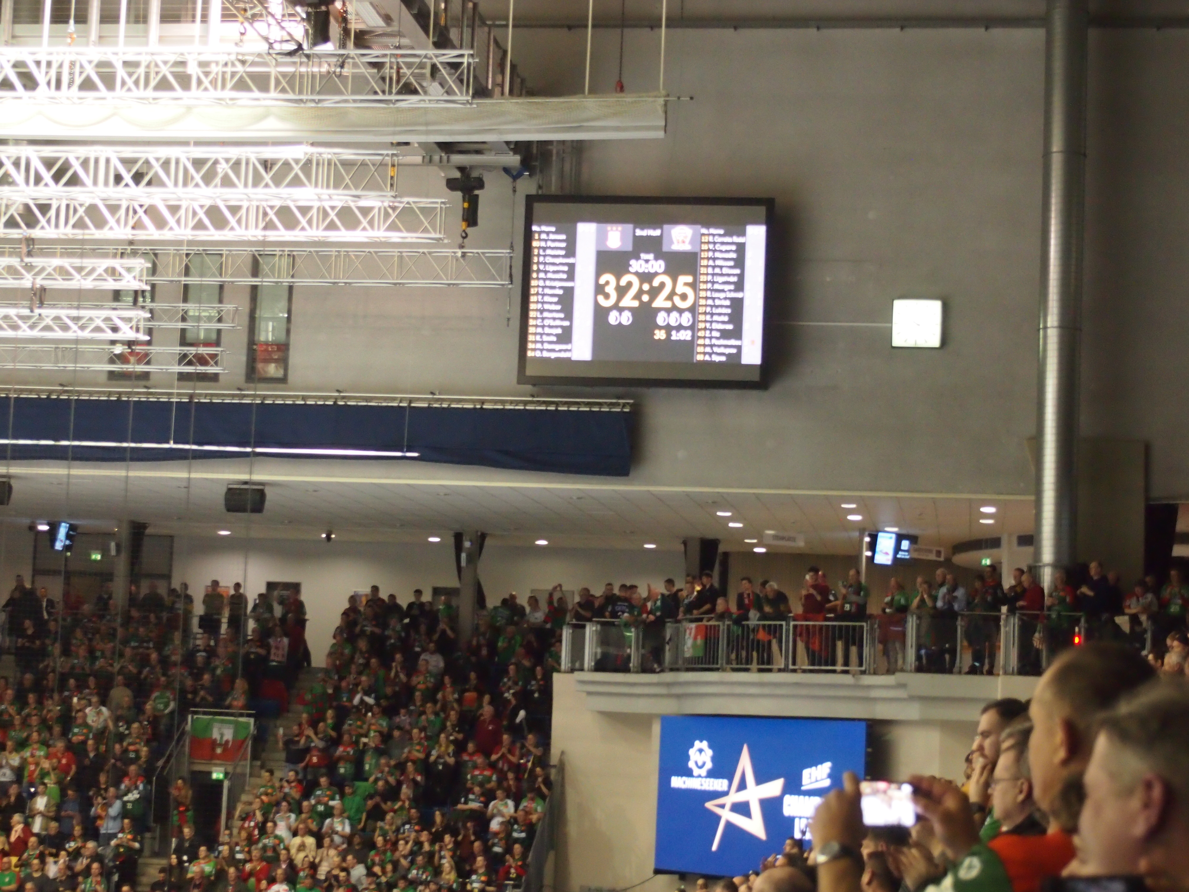 Und genauso beeindruckend gestaltete sich der Spielverlauf. War das Spiel in der ersten Halbzeit noch ausgeglichen (Halbzeitstand 16:15), konnte sich der SC Magdeburg in der zweiten Halbzeit immer weiter absetzen. Über eine grandiose Abwehr, Portner-Paraden und sehenswerte Konter führte der Deutsche Meister zehn Minuten vor dem Ende mit 27:21. Schlussendlich stand dann ein ungefährdeter Sieg mit sieben Toren Vorsprung (32:25) zu buche. Die Halle bebte in den letzten Spielminuten und die hinter unseren Sitzplätzen platzierten ungarischen Fans kamen nicht mehr gegen die Fan-Gesänge an.