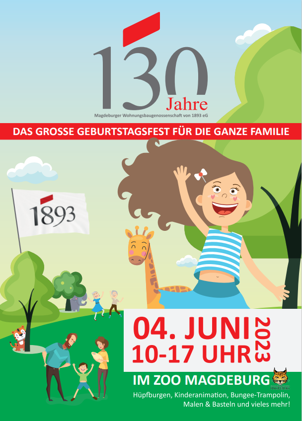 Und wir als Ihre Genossenschaftsfamilie wollen deshalb mit Ihnen im Magdeburger Zoo ein großes Familienfest feiern. Da an unserem Geburtstag (27.2.) das Wetter vermutlich nicht so toll sein wird, findet die Sause am 4. Juni 2023 statt.